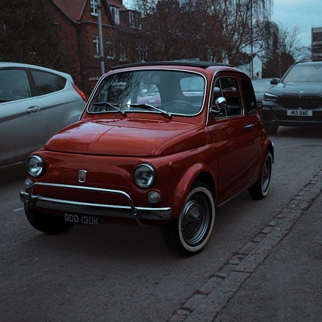 The 2013 Fiat 500 is renowned for its compact size, making it ideal for urban environments․ Its overall length measures approximately 139․8 inches (355 cm), with a width of 64;5 inches (164 cm) and a height of 60․8 inches (154 cm)․ These dimensions contribute to its nimble handling and easy parking capabilities․