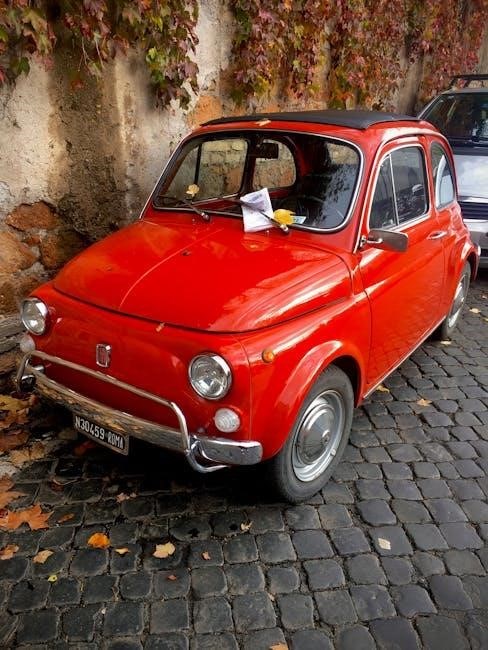 The Fiat 500’s steering system provides responsive handling, offering a direct connection to the road․ Familiarize yourself with the steering feel and responsiveness for optimal control․ The suspension system is tuned for a balance of comfort and agility, absorbing road imperfections while maintaining stability․